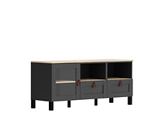 • TV skrinka obsahuje 2 otvorené police a 2 zásuvky, ktoré sú na valčekových koľajničkách.