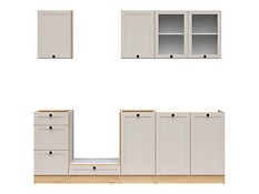 Funkčnosť kuchynskej linky Junona Line je doplnená estetickým vzhľadom a nadčasovým dizajnom. Korpusy vo farbe dub bernstein doplňajú dvierka vo farbe uni kashmir a vytvárajú tak jedinečný dizajn kuchyne. Charakteristický vzhľad tejto kuchyne dotvárajú jednoduché úchytky.