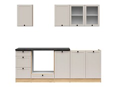 Kuchynská linka so šírkou 180 cm umožňuje osadiť digestor a voľne stojaci sporák a dvojkomorový celoplošný drez. Kuchynskú linku Junona Line 180 je tiež možné rozšíriť o ďalšie skrinky z rovnakej kolekcie, v rovnakom dizajne.