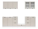 Zaujme nielen funkčnosť, ale tiež estetický vzhľad a nadčasový dizajn kuchynskej linky Junona Line. Korpusy v bielej farbe sú doplnené dvierkami v elegantnej farbe uni kashmir s ozdobným rámom. Jednoduché čierne úchytky dokresľujú čistý, harmonický vzhľad.