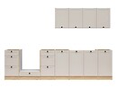 Zaujme nielen funkčnosť, ale tiež estetický vzhľad a nadčasový dizajn kuchynskej linky Junona Line. Korpusy v prevedení dub bernstein sú doplnené dvierkami v elegantnom odtieni uni kashmir s ozdobným rámom. Jednoduché čierne úchytky dokresľujú čistý, harmonický vzhľad.