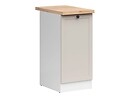 Skrinka je ľavostranná – jej čelo sa otvára doľava. Ak oceňujete minimalistický dizajn, určite si všimnete aj farbu spodnej skrinky Junona Line. Korpus v bielej farbe je doplnený dvierkami v prevedení uni kashmir s ozdoným rámčekom. Celok dopĺňajú klasické madlá v tvare gombíkov a pracovná doska vo farebnom prevedení dub craft zlatý.